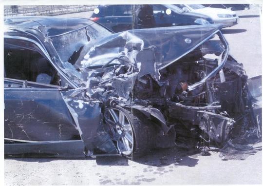 警察の方や現場に行って車を見た次男が口をそろえて「良くこの程度ですんだものだ。死んでいても不思議じゃない」と言われるくらい車は大破していたそうですが、本人は、左目まわりの骨折とまぶたを切って何針か塗ったぐらいと、右手の人差し指を少し骨折しただけですみました。眼球に傷もなく体や内臓も大丈夫でした。