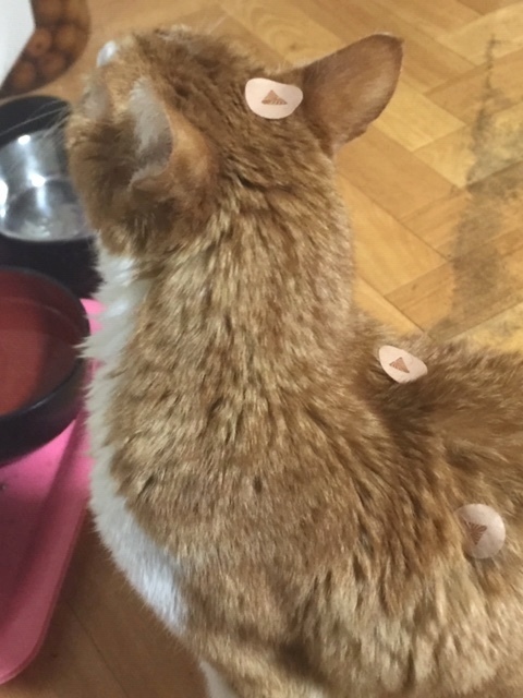 その時、餌には普芝仙エキスを1滴、体にはエスパーシールを貼ってやりました。朝夕の2回の僅かな食事で痩せましたが、1か月くらいした頃から自力で食べ始め今では完全に回復し、以前よりも食べ過ぎるくらいになりました。体重も増え体力もほぼもと通りになったのです。本当に嬉しいし、少々お目めが痛々しいですがとてもかわいいです。長生きしてほしいものです。