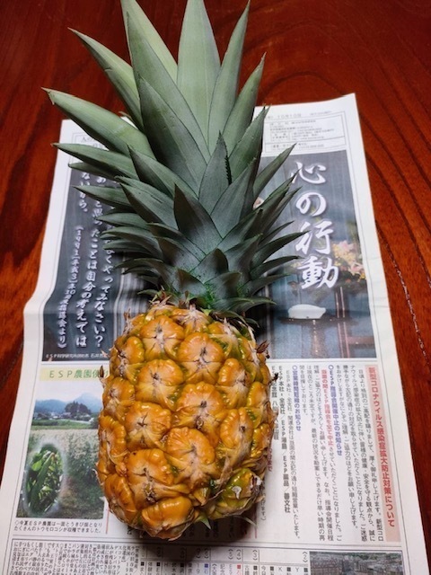 今年、10年かけて初めて実ったパイナップル。南国産に負けないくらい美味しかったそうです。