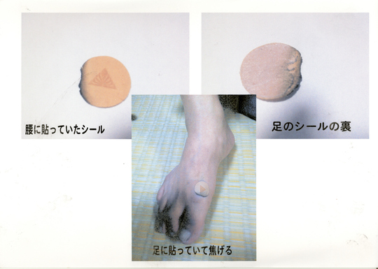 体に貼られたエスパーシールが目の前で焦げて真っ黒になり、ご本人は「熱っ!」と言ってあわててシールをはぐって見せてくださいました。不思議なことに痛いところが治ってしまうのだ。